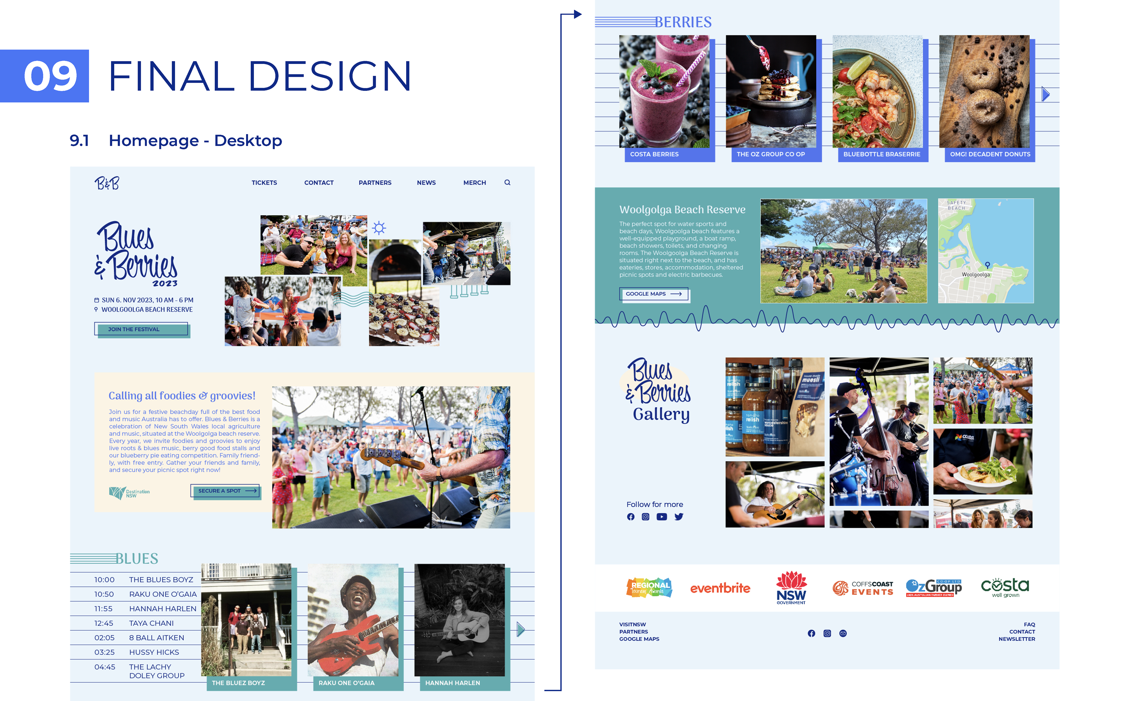 Redesign av nettsiden til Blues & Berries festival. Sluttprosjekt i Graphic Design for The Web (SDES9762) ved UNSW Sydney, høsten 2022. Prosjektet var firedelt, der hver delleveranse utgjorde en del av sluttleveransen;